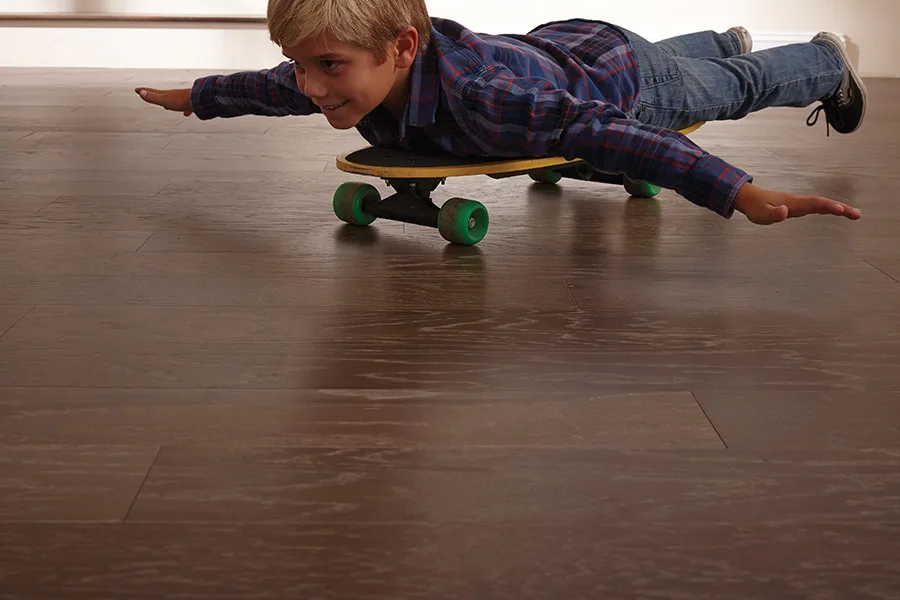 There are many wood flooring types to choose from that all possess their own charm. Checking the foundation under the flooring will help you narrow your search, as the heaviness of the flooring will need to be considered. You'll first need to decide if you want solid hardwood floors or engineered hardwood floors. Next, what species of wood best serves your space? Domestic species like maple and oak are typically more affordable than exotic ones. Exotic wood from around the world may create the perfect tone in a room. The finish of wood floors can either be smooth, distressed to create an antique look, or hand-scraped with long flat lines. Hardwood floors mostly come prefinished, though unfinished floors allow you to pick your own stain and sealant.
